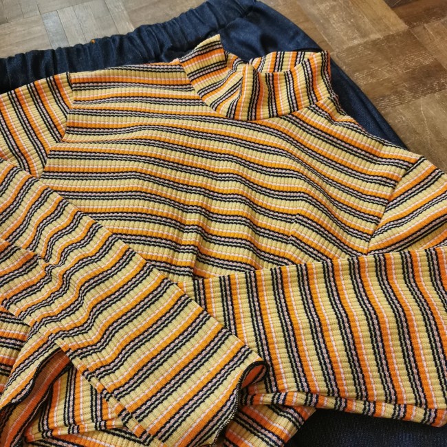 Le col montant totalement seventies à manches longues et coupe ajustée est réalisé sur mesure dans un jersey à rayures jaunes/oranges/marron/noires composé de coton d'elastane et de polyester pour vous assurer de ne jamais avoir froid sans négliger le style et le confort Il est parfait pour l'hiver et le début du printemps disponible du 34 au 48 comptez 10 jours entre la commande et la livraison. Chaque pièce étant fabriquée uniquement pour vous n'oubliez pas de mentionner la taille voulue dans les commentaires à la validation de votre commande.