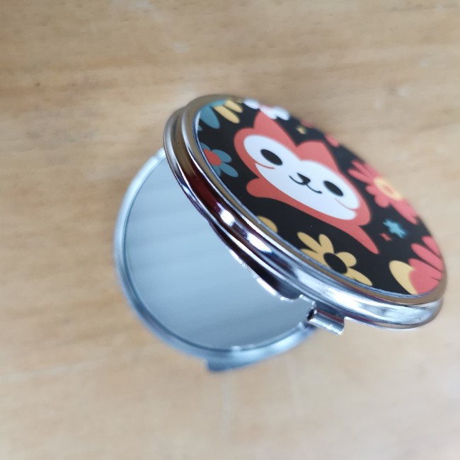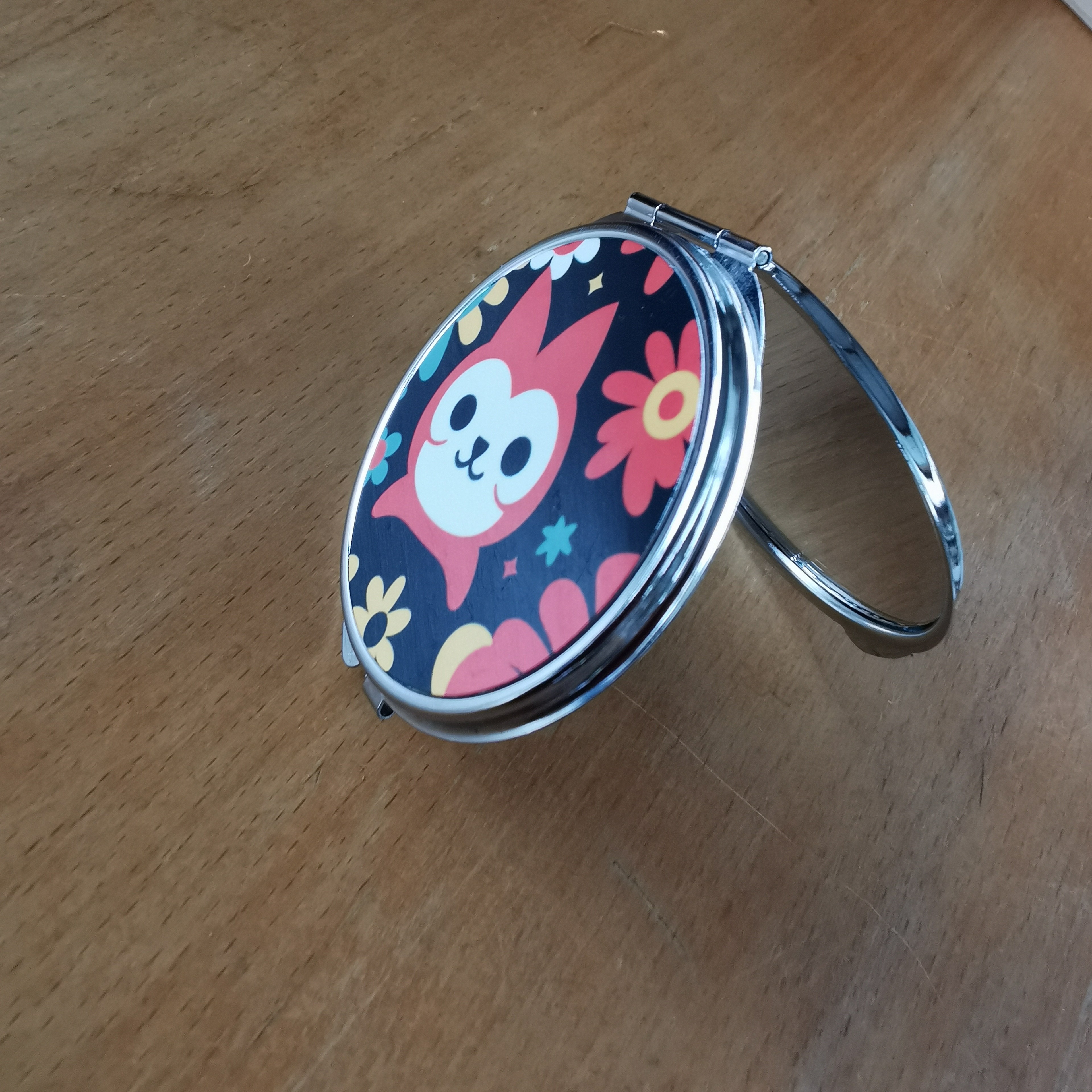 Miroir de poche, illustration "Groovy Cat" en métal argenté, il se glisse dans votre sac, votre trousse, partout où vous en aurez besoin. À offrir ou à s'offrir