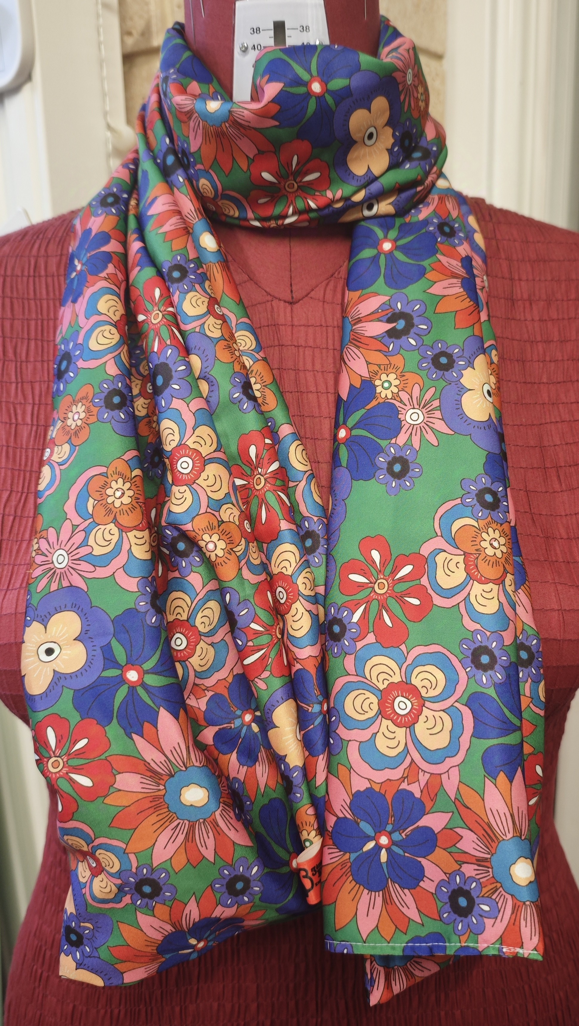 Écharpe/foulard long au motif fleuri et coloré d'Europe de l'est.