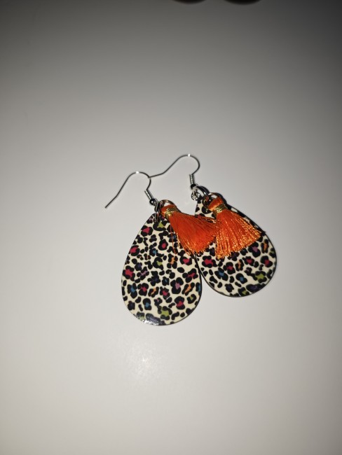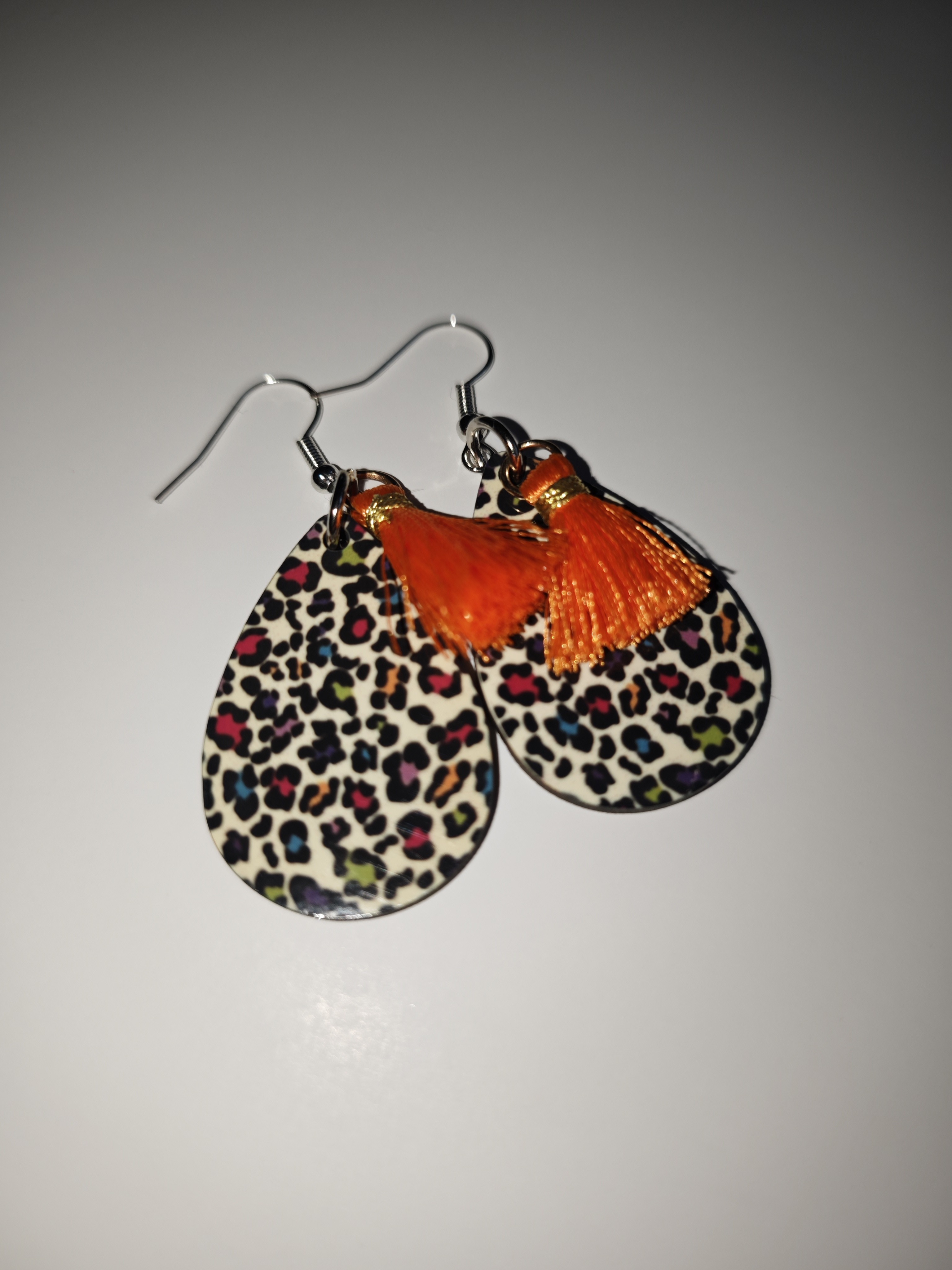 Boucles d'oreilles bois motif léopard multicolore, pleines de peps, elles s'accorderont avec toutes vos tenues. Une touche colorée pour rehausser la plus sobre des robes noires.